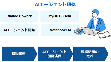 - ・AIエージェント研修のカリキュラムやカスタマイズ例